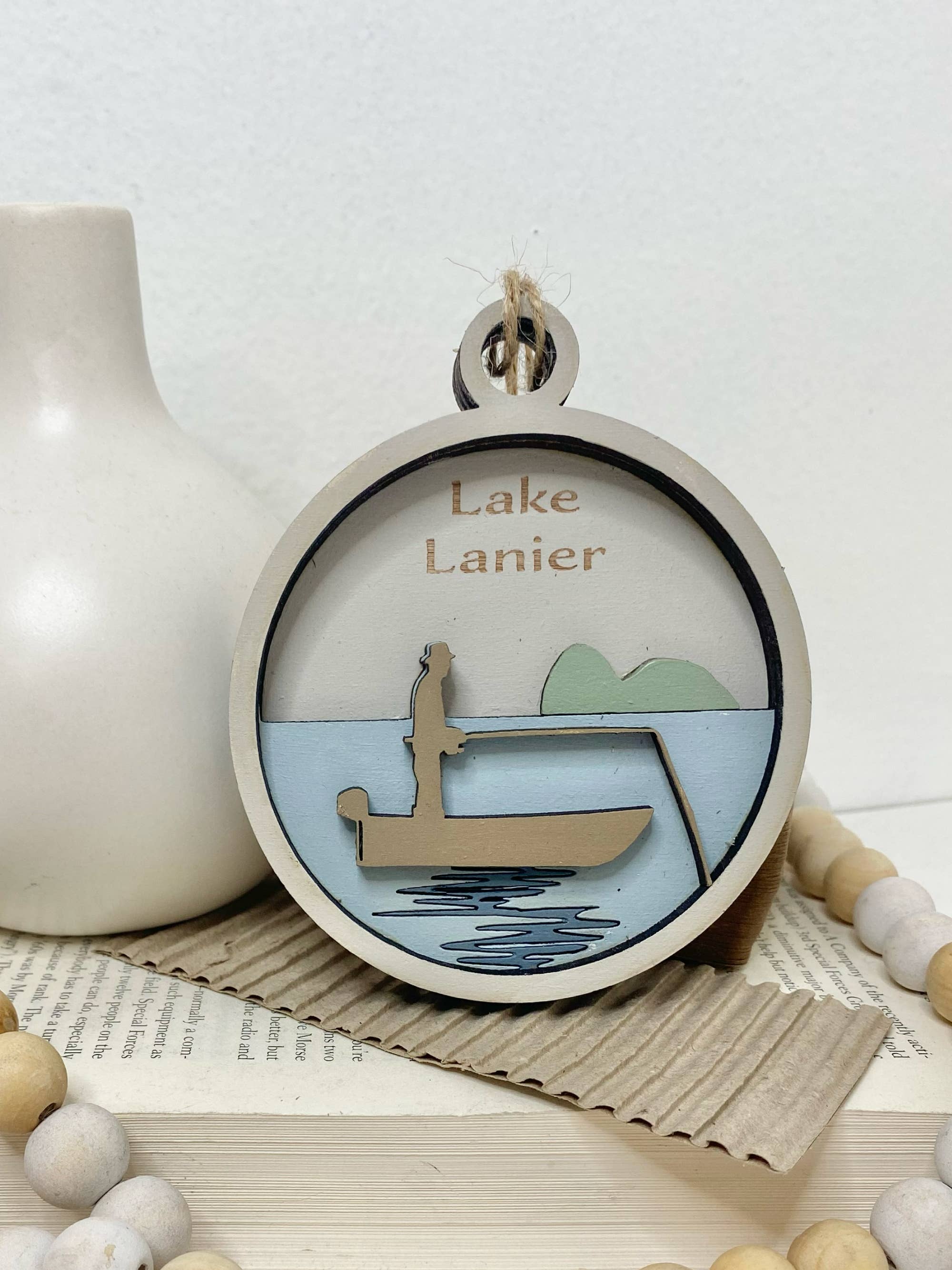 Discover the beauty of our solid wood, laser-engraved Lake Ornament – a true testament to quality craftsmanship. With its impeccable detailing and sturdy construction, you and your customers are sure to love it. The double layer at the hook ensures durability, eliminating worries about breakage. Plus, you can order ornaments for any lake you desire. We take sustainability seriously, which is why our packaging is made from recycled cardboard. We collect and reuse cardboard whenever possible, ensuring eco-friendly practices. Your ornament comes ready to hang on a hook or display in a basket by your register. Personalize your ornament by engraving your store name and location on the back at no extra charge. Each piece is meticulously glued together for flawless assembly, with the lake outline being raised for added depth, while the Lake Name and Coordinates for the center of the lake are elegantly engraved.