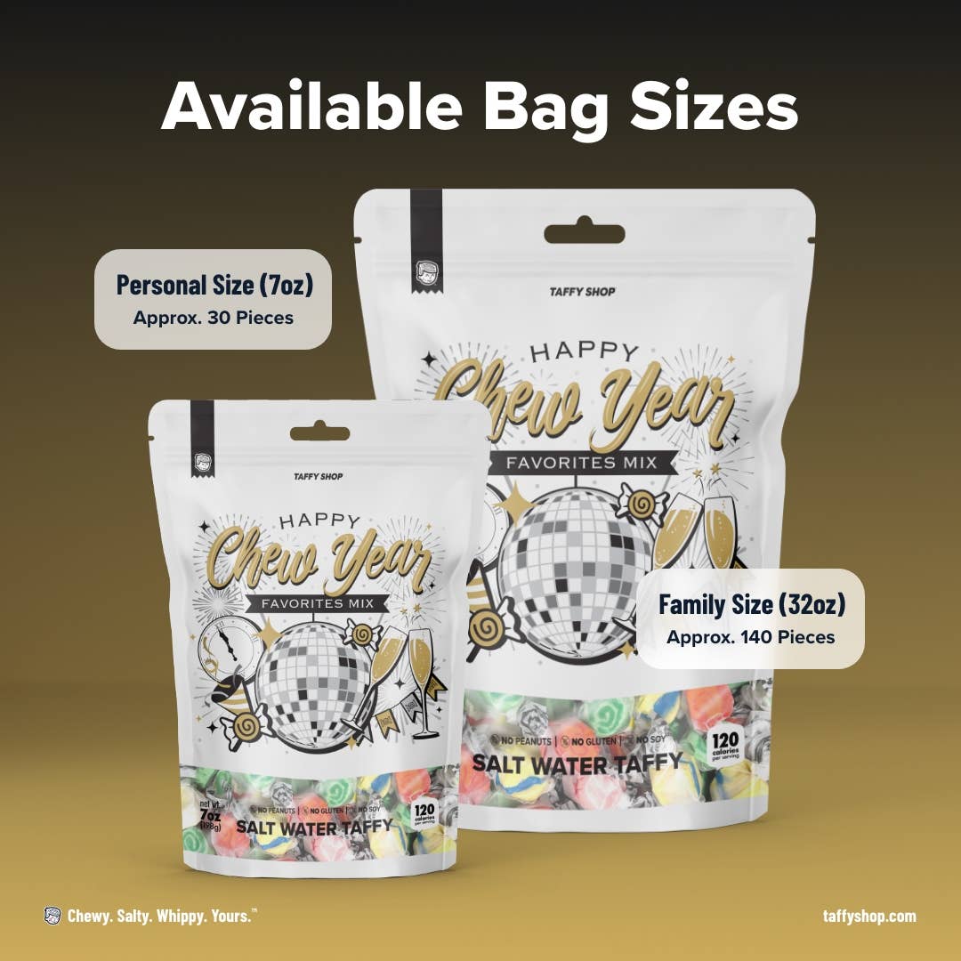 Just as its name implies, this taffy is very berry delicious and packs some heat...It's Very Fire Berry™! Looking for something a bit different? This taffy with a hot twist might just be for you. Taffy Shop's Very Fire Berry™ saltwater taffy is guaranteed fresh. The Taffy Shop sells the most delicious, flavorful, mouth-watering saltwater taffy this side of heaven. So, it is completely normal to wonder, "Just how much taffy will I get?" Here's a quick rundown by bag size to give you an idea of what to expect: Personal - 7oz, 30 pieces Family - 32oz, 144 pieces