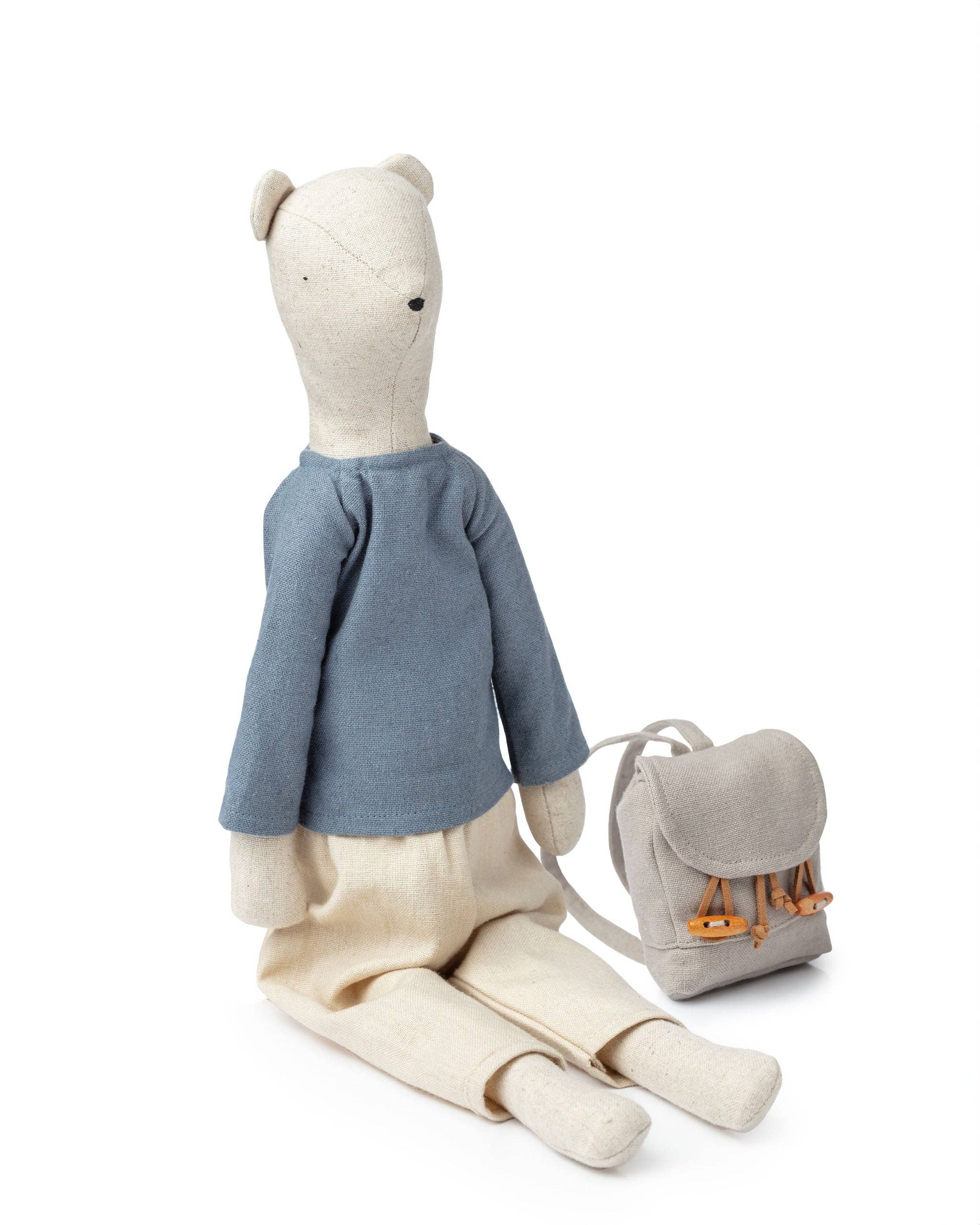 Meet Rupert the Rabbit from the Adventure Pickles collection! Rupert is a timid and quiet rabbit, eagerly looking for a new best friend to share all his secrets with. He's not just a playmate at home; Rupert is the perfect companion for exciting adventures, ready to listen and create cherished childhood memories together. While he's large enough for comforting bedtime hugs, Rupert is also compact and portable, fitting snugly into your child's bag for spontaneous adventures. Dressed in simple, earthy-toned clothing, the Adventure Pickles exude a timeless and natural charm. The Adventure Pickles all come with an adventure backpack for collecting treasures. Discover the captivating Adventure Pickles collection and bring home Rupert the Rabbit! Materials, Care & Size: * Size: 50 cm * 70% Cotton & 30% Linen * 100% polyester fill * Hand wash * Suitable for all ages * Complies with UK & European toy safety standards * Safety warning: Keep away from fire