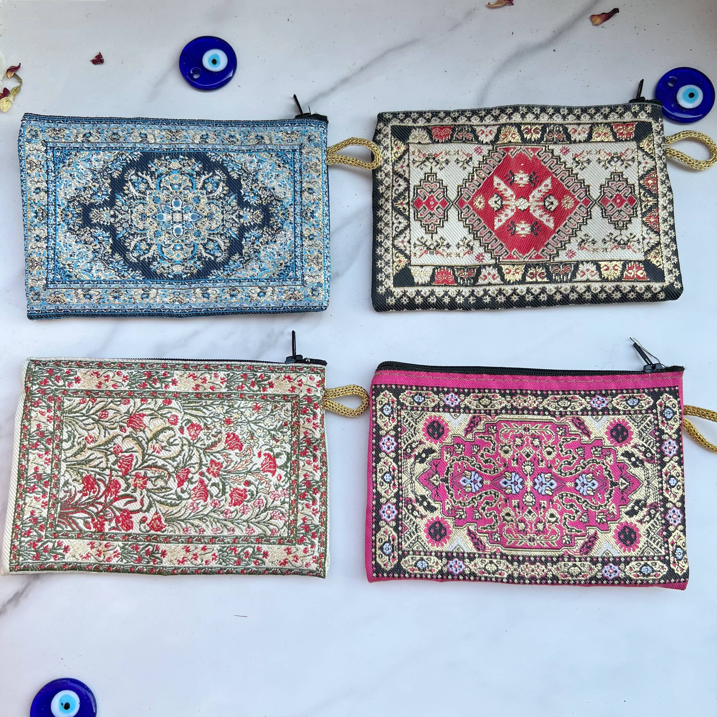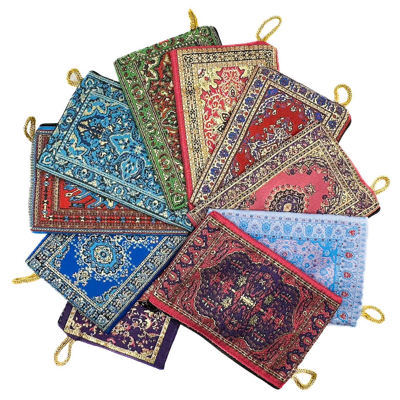 The genie's magical carpet coin purse is not only a beautiful and functional accessory, but it is also a symbol of good luck and fortune. According to Middle Eastern mythology, genies are supernatural beings that possess magical powers and can grant wishes to those who possess their lamp or other belongings. The carpet design on the exterior of the purse is inspired by the magical flying carpet that Aladdin's genie used to transport the hero and his princess love interest! Our magical purse is functional also! The compact size of this coin purse makes it easy to carry in your pocket, while still providing ample storage for your coins, cash, and cards, or Tarot cards. Experience the magic and mystery of Aladdin's genie, as well as bring good luck and fortune into your life! Package content: 1 case contains an assortment of 12 coin purses. Purse Size(Approx): 6"x 4" Made with positive vibes in mind