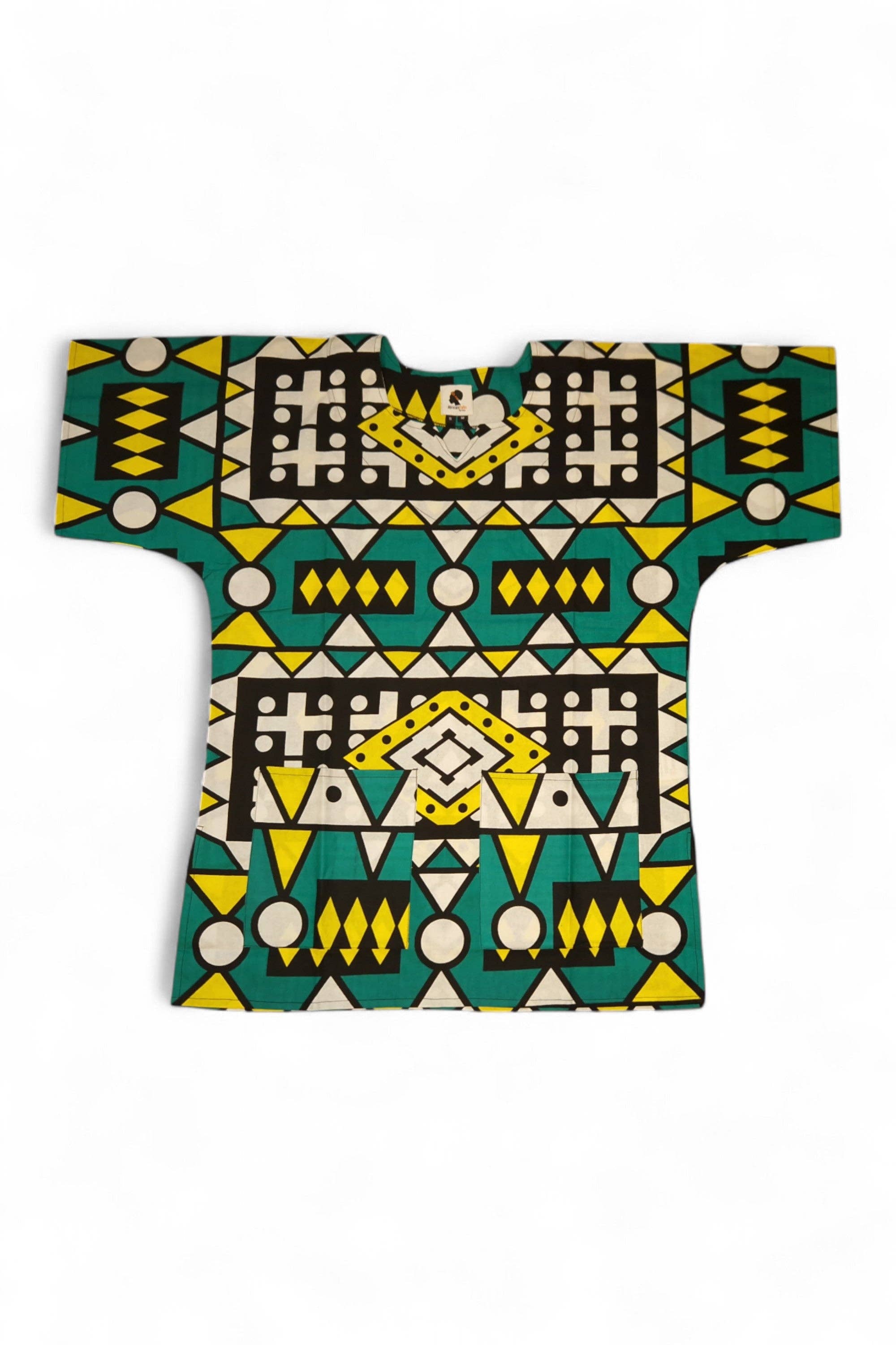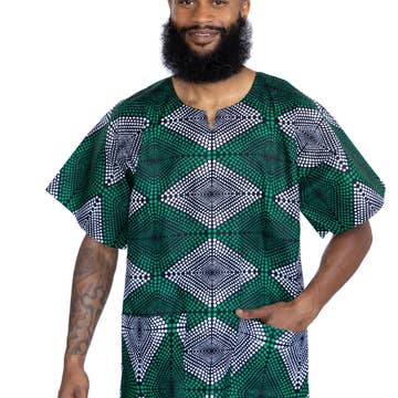 Green diamonds Dashiki Shirt / Dashiki Dress - African print top - Unisex