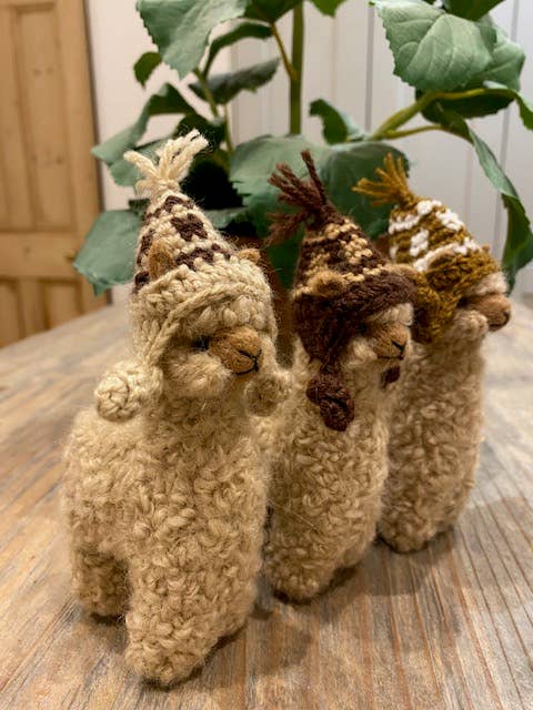 Hats for your Alpacadorables! Put a cute hand knit alpaca hat aka chullo ("choy-yo") on your Alpacadorable! The chullos are made entirely by hand from alpaca yarn. Many are also purchasing these Alpacadorable chullo hats for other craft projects. The chullos come in a multitude of colors which varies with each shipment we receive. If you ask for a special base color (in the Checkout Comments box) we'll find the closest match available, otherwise we will pick one that looks good on your Alpacadorable if also ordered. We have some in a Christmas theme. If desired, ask for those in the comments. Pick the 3" or 5" Chullos for 3" or 5" Alpacadorable figures. Suggested Retail: $5.95 and $6.95 for 3" and 5" chullos Created under Fair Trade principals by a small family of artisans in Peru. See all Alpacadorables!