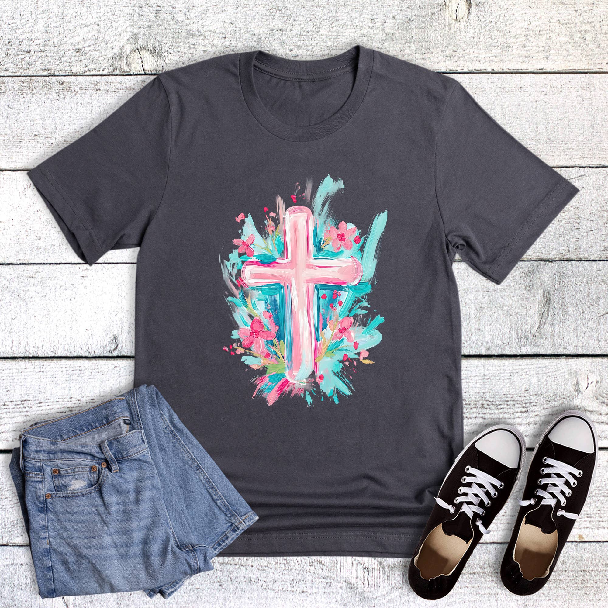 This faith graphic tee featuring a cross with pumpkins provides a retail unisex fit. It boasts a striking graphic print that enhances the character of any outfit. Made from superior materials, it provides an ultra-soft shirt and print. Each tee is proudly printed in Texas, a testament to its outstanding quality. Add a dash of style to your wardrobe with this remarkable graphic t-shirt.