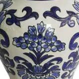 Imagine the perfect centerpiece: a perfectly manicured sphere of preserved boxwood foliage, boasting a lush, emerald hue that never fades. Nestled within a hand-painted ceramic pot adorned with intricate blue and white designs, this topiary tree brings a symphony of color and texture to your space. The hand-crafted ceramic pot elevates the entire piece. Each pot is uniquely adorned with delicate floral patterns, adding a touch of artisanal charm. More than just a centerpiece, this preserved boxwood topiary tree makes a thoughtful gift. Small - approx 5.1" x 5.1" x 11" Medium- approx 6.7" x 6.7" x 15.7" - pot size: 6.75" x 6.75"x 4.75 Large- approx 8.3" x 8.3" x 18.9" - pot size: 7.5" x 7.5" x 4.75" Our preserved boxwoods can be used in indoors & covered outdoor areas. We highly suggest to keep our preserved boxwood items indoors when not in use. Please avoid direct sunlight and extreme heat. Lightly mist every 1-2 months for best appearances & avoid over-saturating preserved leaves.