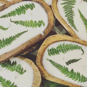 Our pressed floral candles feature dreamy floral tableaus displayed between panes of glass. Hand poured with a coconut wax blend. Lovingly handmade in Colorado. Wicks: 1 Ounces: 4.5 Burn Time: 22 Hours Dimensions: 2.5"H, 2.75" Diameter Fragrance Notes: Clary Sage, Creamy Santal, Falling Leaves, Red Cedar, Scotch Pine, White Musk Essentials: Eucalyptus, Fir Needle, Ginger, Orange, Pine, Virginia Cedarwood Lid Botanicals: Water Fern