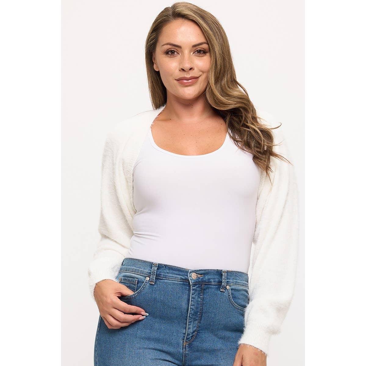 Wholesale Cropped Bolero 3/4 Sleeve V-Neck PLUS size Cardigan CO129PL