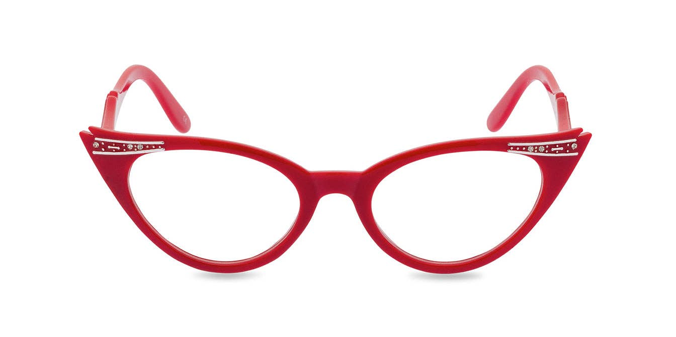 This sparkly petit style, Marilyn, closely resembles the shape the one and only Miss Monroe wore onscreen in the smash hit ‘How to Marry a Millionaire’. Made from high quality acetate, Marilyn is a classic cat eye shape with extra zing. Colour: Wine red with diamante trim Ready for glazing to a standard reading strength or to your prescription, just ask us for a quote. size: 49-13-140 width: 139mm lens: 49mm x 31mm bridge: 13mm temple: 140mm Photo credit: Model @ladyeccentrik, Photographer @annarphotography, Hat @pywacketmillinery, Jewellery @Splendette