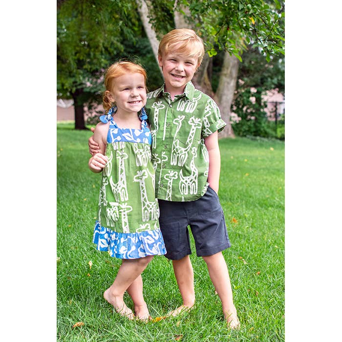 These patterned kid’s button down coconut shell buttons and are bound to become a summer staple. Our fabrics are hand silk screened in our original Balizen prints with an Eco-friendly, seaweed based dye.These shirts are made with care in our fair trade, in-house workshop in Bali. 100% cotton - Hand or machine wash warm, tumble dry low. - Sizes - 2 years, 3-4 years, 5-6 years, 7-8 years