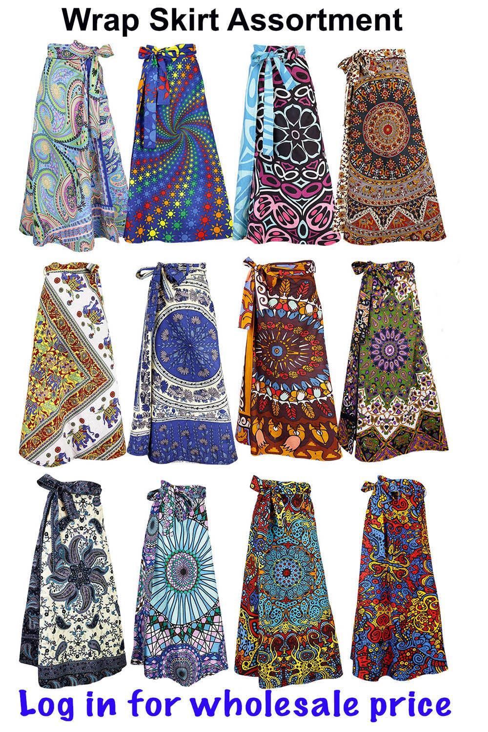 Wholesale Lot of 12 Assorted Hippie Skirts