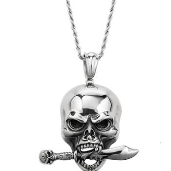 Show everyone that your devotion for world peace is never-ending with our Undying Peace Skeleton Hand necklace. Made of stainless steel, the pendant on the Undying Peace Skeleton Hand necklace features a skeleton’s hand chucking up the peace sign, and comes complete with a magnetic ornament of another peace-totting hand which you can attach to the pendant. 316L Stainless Steel Pouch included Pendant Size: W: 0.83" H: 1.89" Chain Length: 28" Adjustable Magnetic Ornament Size: H: 2.17" W: 0.95" L: 0.95"