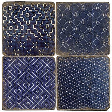 Each coaster has a different coordinating design and measures 4” by 4” square. Made in the USA of absorbent stone to absorb excess condensation from beverages. Cork backing protects your surfaces from scratches and stains. Beautiful artistic design allows the coasters to remain displayed even when not in use. Makes a wonderful housewarming, birthday or holiday gift. Comes packaged in a clear box showing each design and includes a hang tab.