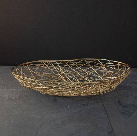 Lightweight and versatile, these gold wire market baskets bring a refined farmhouse feel to countertop displays, produce setups, or picnic spreads. Each nesting set includes three sizes (14", 12", and 10" diameter) with fixed handles for easy styling and function. Ideal for fresh fruit, linens, or merchandising grab-and-go goods. Sold in a pack of 2 full sets—perfect for gifting, kitchen displays, or bundling with summer decor. Iron 6" H x 14" Dia, 5.25" H x 12" Dia, 4.5" H x 10" Dia. Pkg Desc: Pk/02 Sets