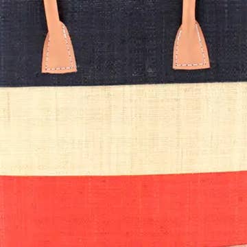 With its hand-loomed raffia palm fiber, leather handles and feet, drawstring closure, and inner pocket for organization, the Augustine Straw Basket Bag is an exceptional artisanal bag. Enjoy the durability and charm of this versatile accessory. Perfect for monogramming additional embellishments. Dimensions: Small: 12"x5"x10" (*Models shown with Small solid colors & Neutrals Pinstripe) Medium: 14"x7"x11.5" (*Models shown with Medium Brights Pinstripe & Fuchsia Coral Multi Pinstripe) Large: 17"x8.5"x13.5" Contents: raffia palm fiber, leather handles, unlined, drawstring closure. Made in Madagascar. *Tunic in photo: https://faire.com/direct/kikisol
