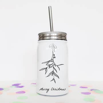 Merry Christmas Beer Can with Lid , Holiday Cup