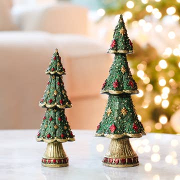 IDEAS FOR YOU: Nature Tablescape, Holiday Mantel, Vintage Inspired Centerpiece, Office Bookshelf, Winter Wedding, Thoughtful Gift. PRODUCT DETAILS: Set of 3 medium trees range from 6.5 inches to 13 inches tall. Set of 5 small includes are 4 inches to 8 inches tall. Large Set of 3 statement-sized trees range in height from 12.5 inches to 19.5 inches tall. Magnets, self-contained within the paper, make these trees sturdy, and easy to assemble. Sets ship flat, are easy to assemble creating a lightweight, sturdy and shapely design. Compact storage offers ease of use year after year. ARTISAN CRAFTED: Our exclusive honeycomb tree and ornaments sets with glitter gold edging are handpicked in trending silhouettes and curated colors. Snowflakes do not have glitter.
