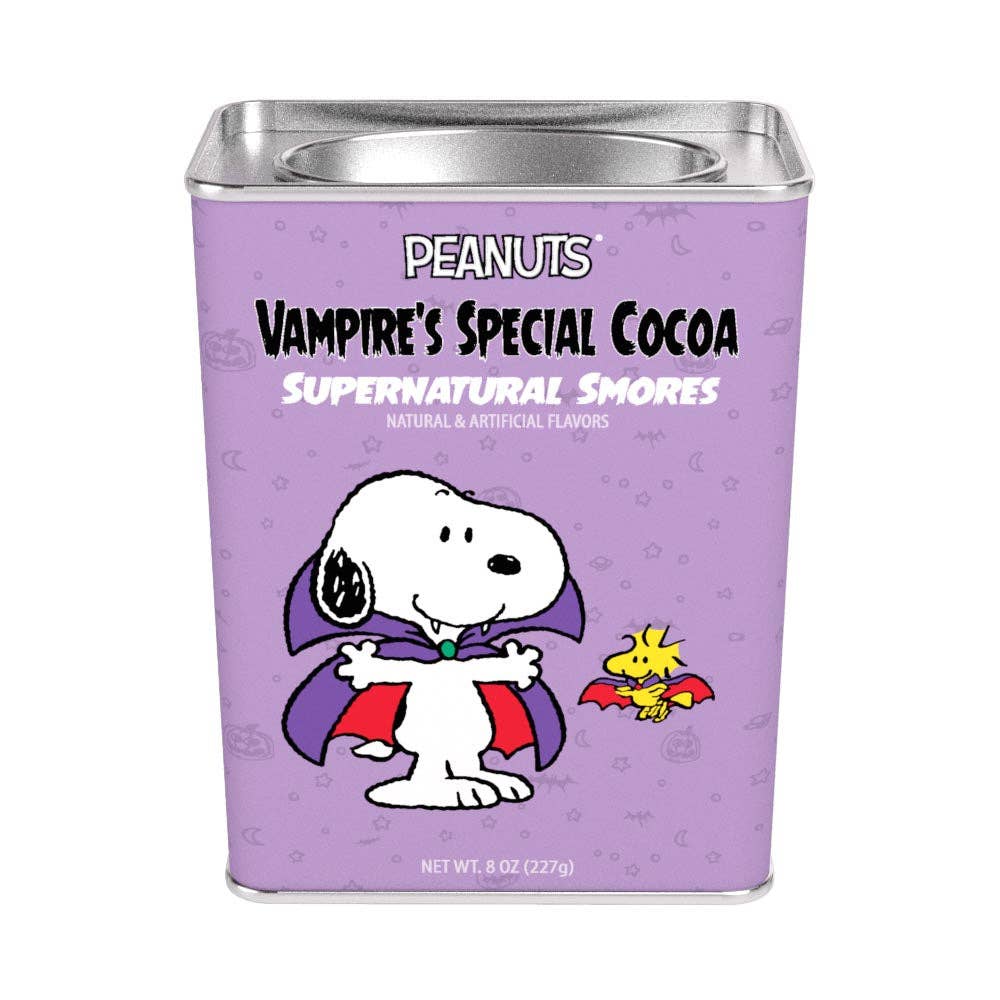 Customers can go on a camping adventure with Snoopy, Woodstock, and the Beagle Scouts, roast marshmallows with them, and enjoy our delicious Smores Cocoa while they're at it! It's delightful way to indulge in a rich and comforting treat during their outdoor fun. Adorned with the whimsical artwork of Snoopy enjoying his camp life with Woodstock and the Beagle Scouts, this cocoa mix is as delightful to look at as it is to drink, making it perfect for Peanuts® fans. Kids and adults alike will adore the sweet, nostalgic flavor, and it comes with 6 servings, making it a wonderful treat for family camping trips or special at-home indulgences.