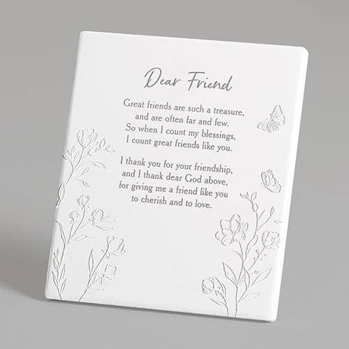 This Whimsical Clear Glass Plaque Fits Well With Any Decor And Makes A Pleasing Gift. Size Of Glass Is 3 x 3. This Glass Plaque Features A Poem: Friends In Christ - A Friend Is Gods Way Of Making Sure You Never Walk Alone. We Knew Right From The Start, God Brought Us Together To Make Us Friends By Heart.