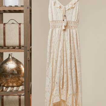 V-NECK LACE TRIM MAXI DRESS