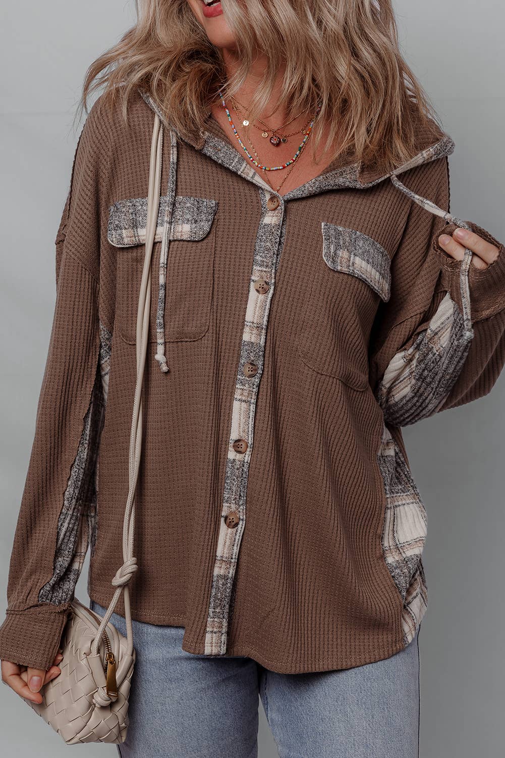 Wholesale Women's Flannel Checked Jacket Hooded Casual Shirt