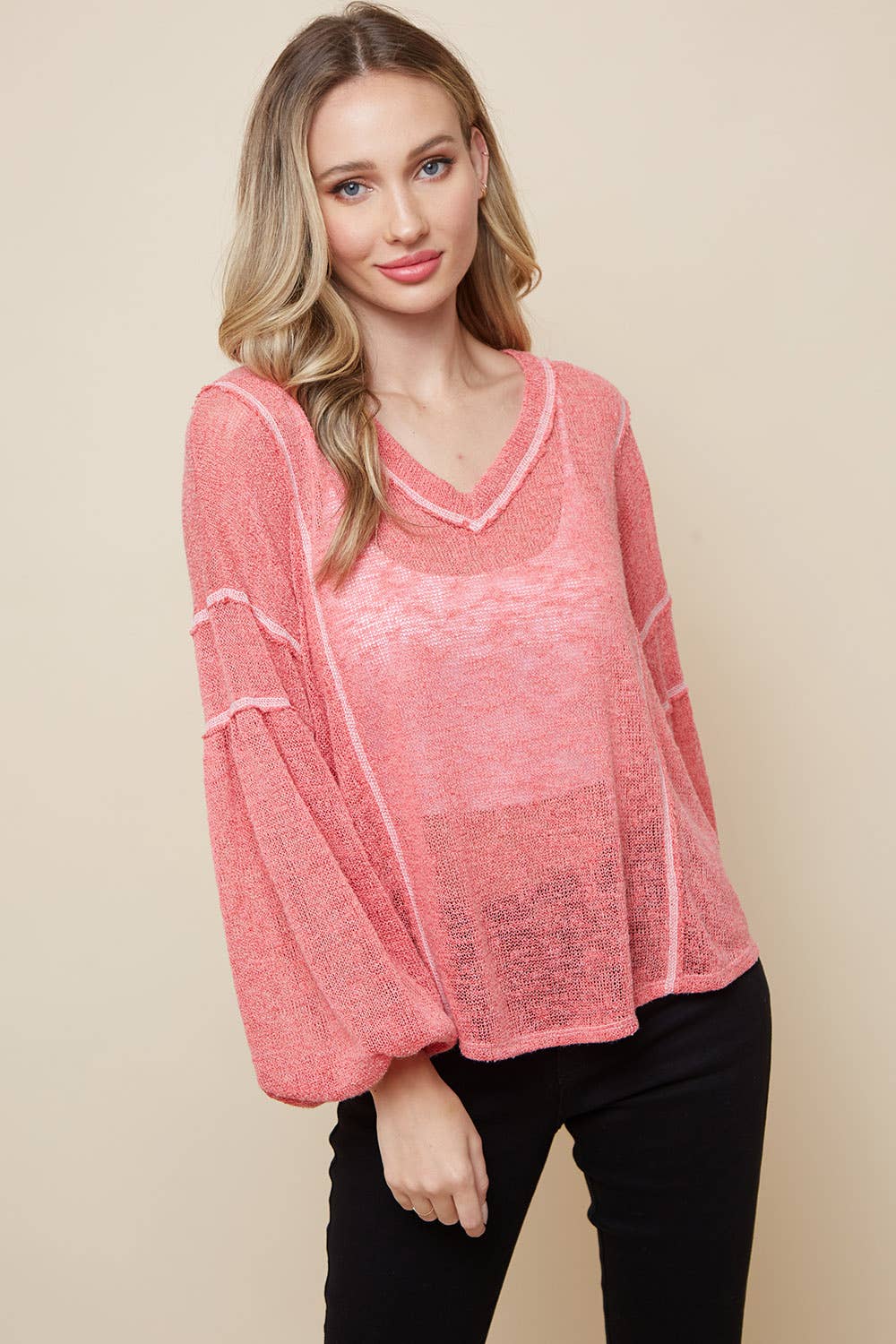 10884SSP627 - PLUS SIZE SOLID V NECK TOP
