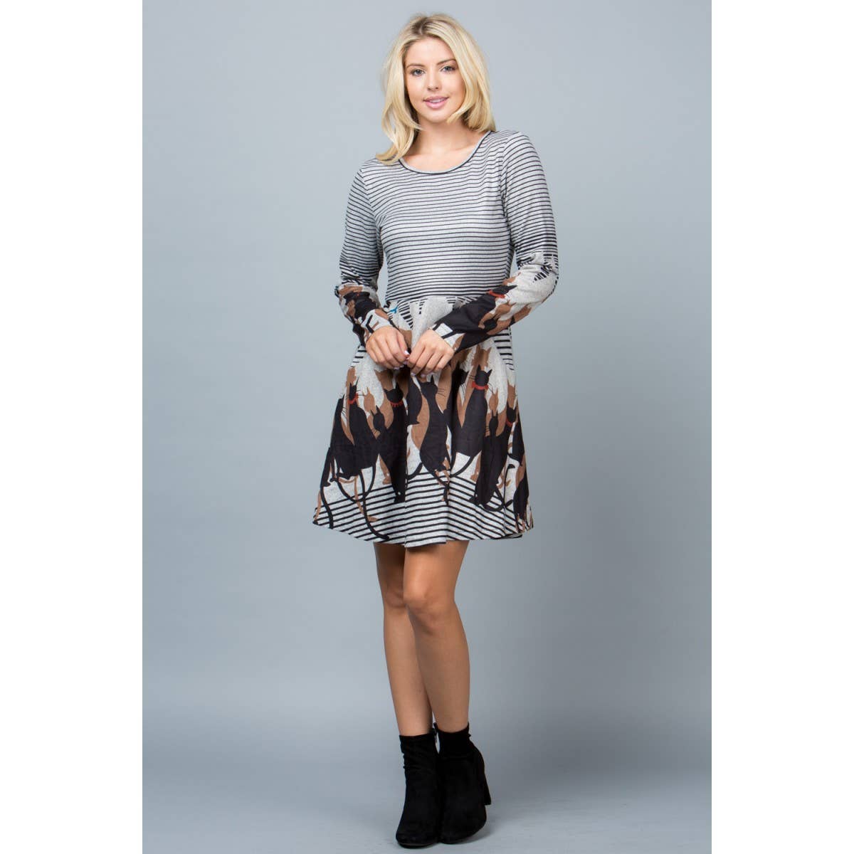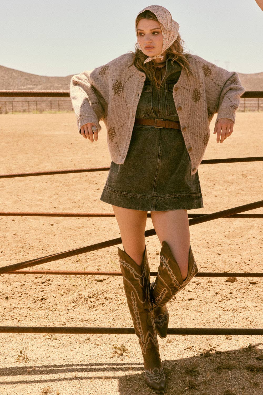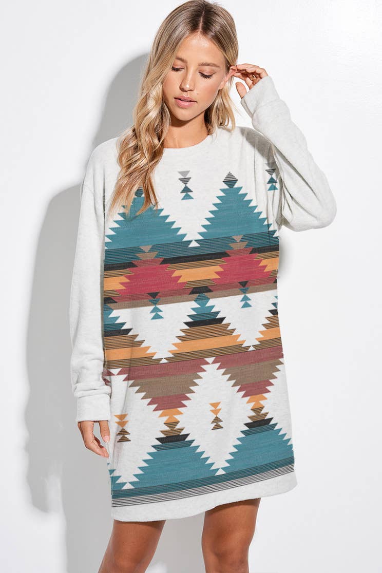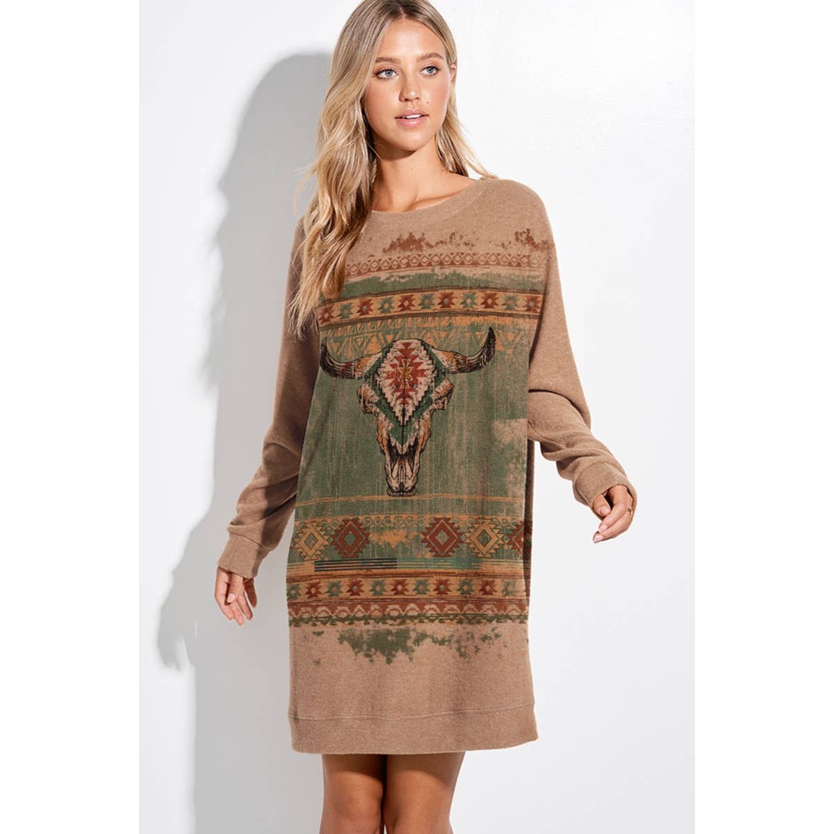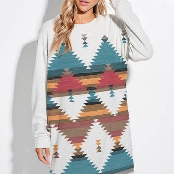 -Rodeo desert print rib tunic dress -Soft fabric, casual style, everyday wear. -Model size: Small ( 5'10" 31- 23- 34 ) -Made in USA