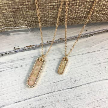 18" Pink Bar Necklace with Stamped Border