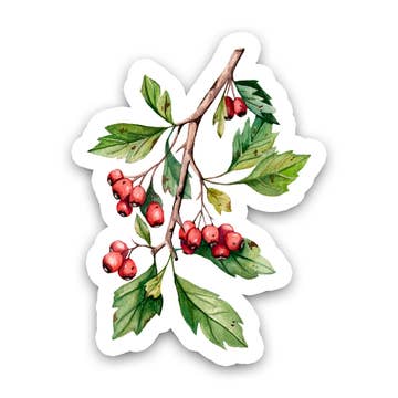 Wander & Gather's waterproof stickers feature illustrations of the natural world, drawn in pen and watercolor by artist Maia Hausler. These heavy-duty stickers are very long lasting, and can be used outdoors and in a variety of locations such as water bottles, cars, and coolers. They are printed on durable vinyl and have a paper backing. Made in the Great Lakes Region. This sticker features Montmorency cherries on an orchard tree branch. This fruit sticker is great for foodies, farmer and gardeners alike. Sustainability note: While made of plastic, our stickers are incredibly durable and intended for long-term use, reducing the amount of plastic ending up in landfills. Sticker are shipped with no individual packaging, in reused or sustainable shipping materials.