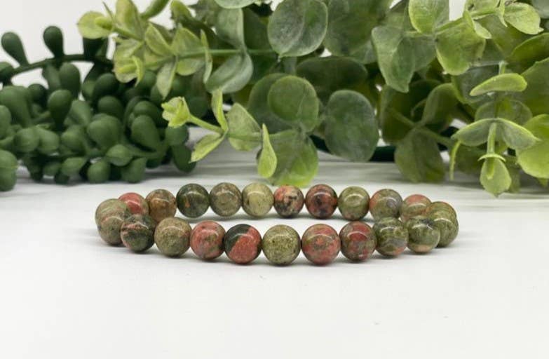 Crystal Listing is for one (1) unakite round bead bracelet - 8mm - (1brownshelf-80) Stockphotos - these bracelets will vary in characteristics due to them being natural. These bracelets will fit most wrists. Product specifications based on average size of entire stock. Beautiful bracelets to use as an accessory or for your meditation time! You can even add your own cute charms. These make great gifts as well!