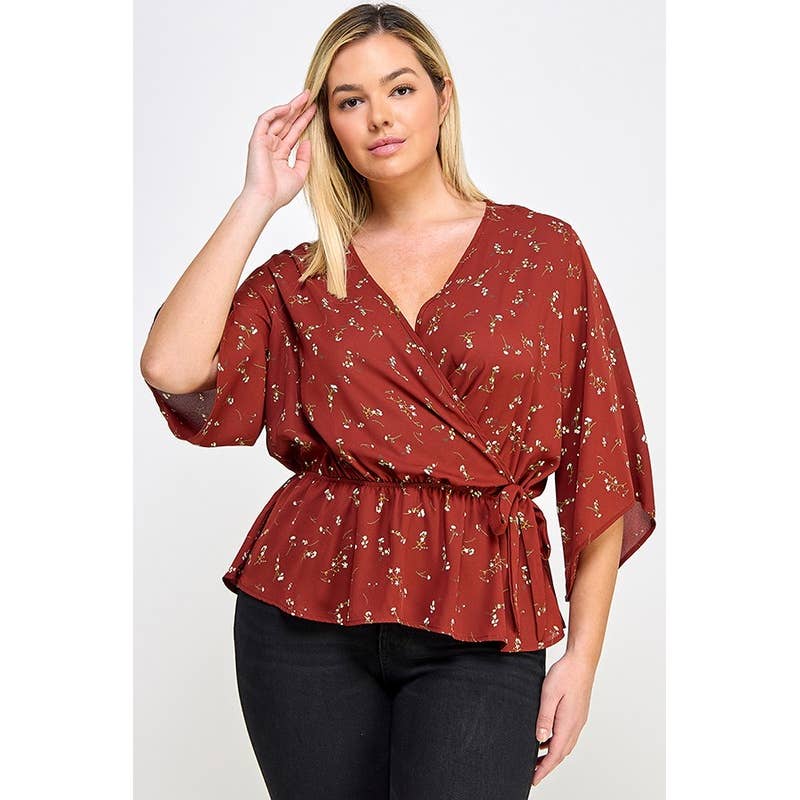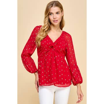 FOIL DOT CHIFFON LONG SLEEVE TWIST BODICE TOP T8262110F