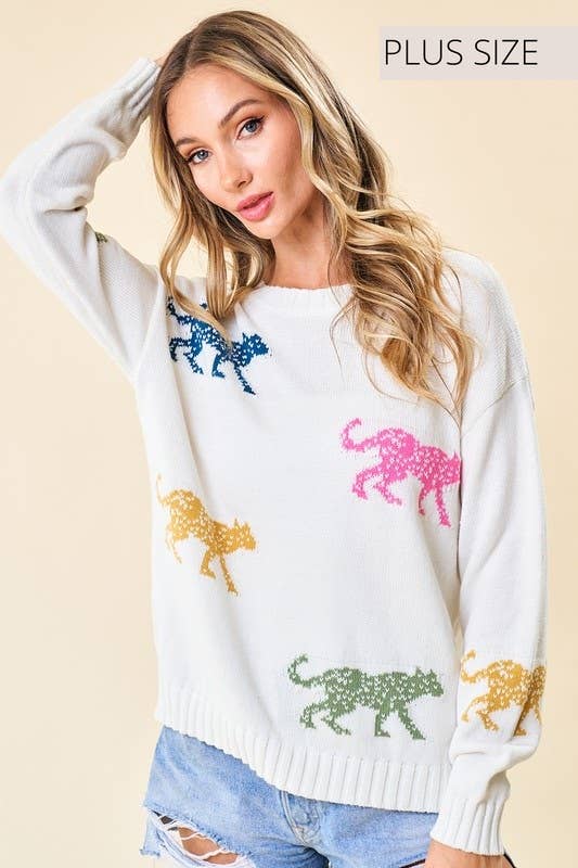 Animals cat jacquard jumper knitted sweater