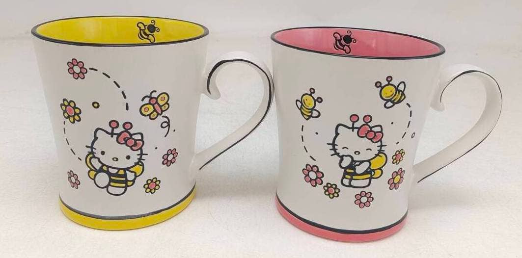Start each day with joy with the Hello Kitty Mug Set! This set includes cute mugs featuring Hello Kitty, adding a touch of cuteness to your coffee or tea routine. It's the perfect gift with its designer packaging, or keep one at work and one at home with this two pack!