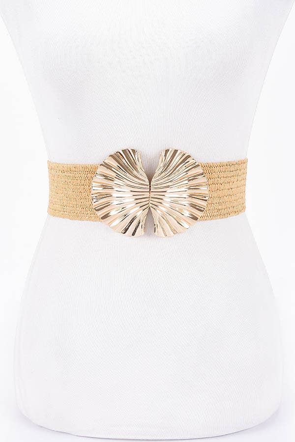 * Metal buckle stretch belt * 70% PVC 30% Elastic * Approx. Width:2.25" Length:28.75" Discover the "Metal Buckle Stretch Belt" – the ultimate blend of fashion and functionality. This exquisite women's belt from H&D Accessories showcases a chic gold buckle that adds a touch of glamour to your wardrobe. With its adjustable stretch design, it promises both comfort and style, making it a must-have for every fashion-forward woman.
