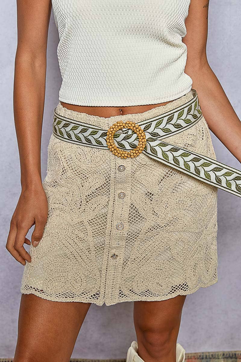 Leatherette beaded pattern detail 'O' ring adjustable belt