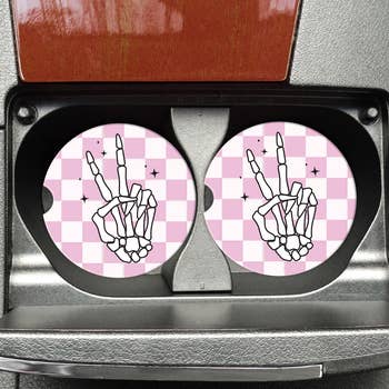 Keep your car cute and clean with our Bite Me - Renee Rapp Car Coaster Set! Designed to catch crumbs, spills, and all the cupholder gunk, these stylish little coasters add the perfect pop of personality to your ride. Lightweight and easy to swap out, they’re made from durable neoprene and measure 2.75 inches across — perfect for most standard cup holders.