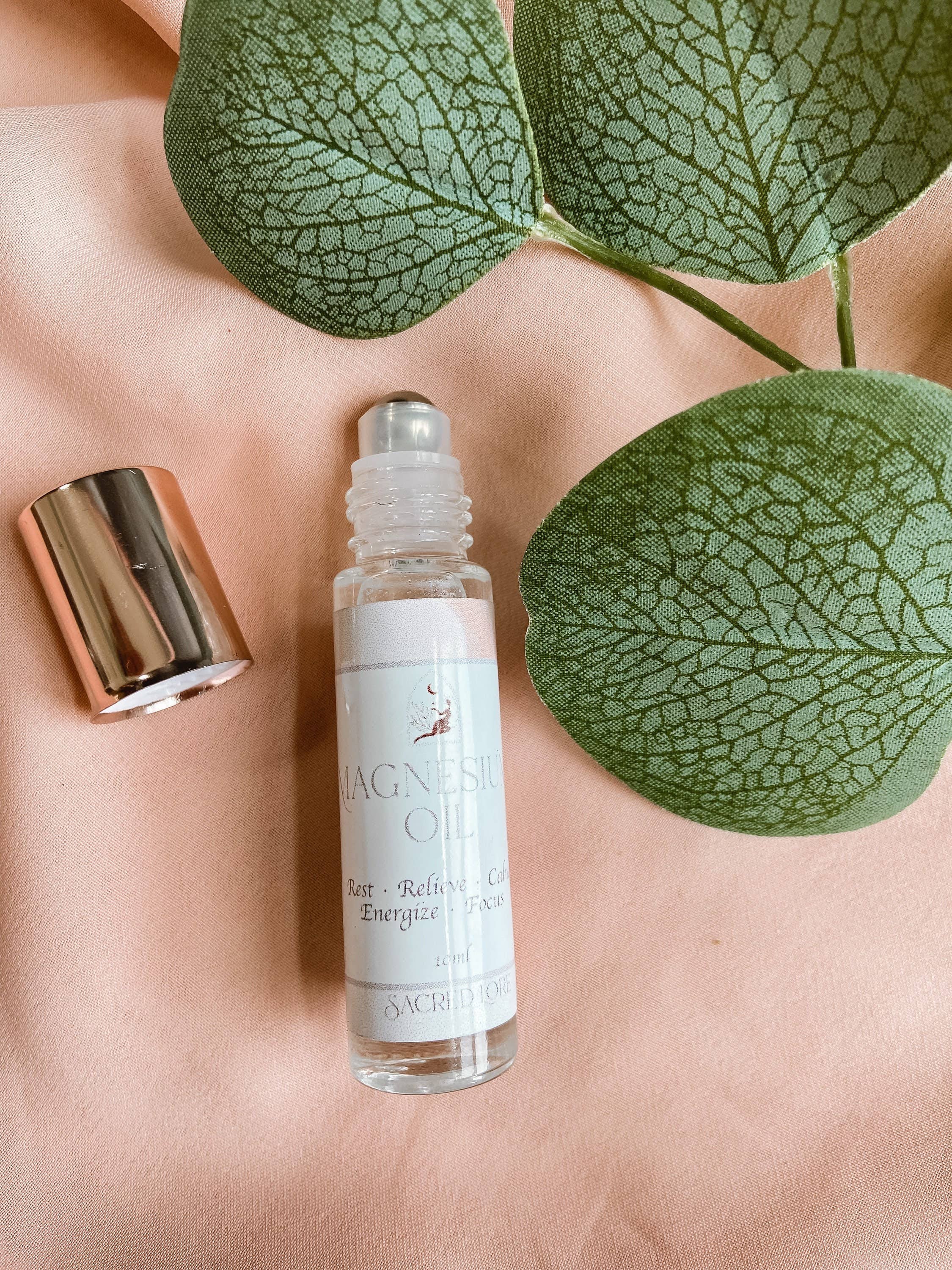 Magnesium Roll-on is synergistically blended with magnesium oil and calming essential oils (Roman Chamomile, Lavender and Aloe Vera) to provide a soothing effect to help with pain relief, sleeplessness, minimizing stress, calming nerves, restless legs and soothing cramps Our MagneCalm Roll-on is gentle on sensitive skin with its special formula to prevent burning, itching and skin irritations. This easy to use applicator allows you to apply straight to the source and can be used on-the-go Ingredients: Magnesium Chloride, Purified Water, Aloe Vera and Essential Oils (Chamomile and Lavender)