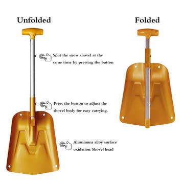 The AceCamp collapsible snow shovel is able to be assembled in seconds - adjustable from 13”to 25.79” for both quick scoop and clearing to shoveling snow. Highly quality light aluminum,you can carry it easily for outdoor activities.