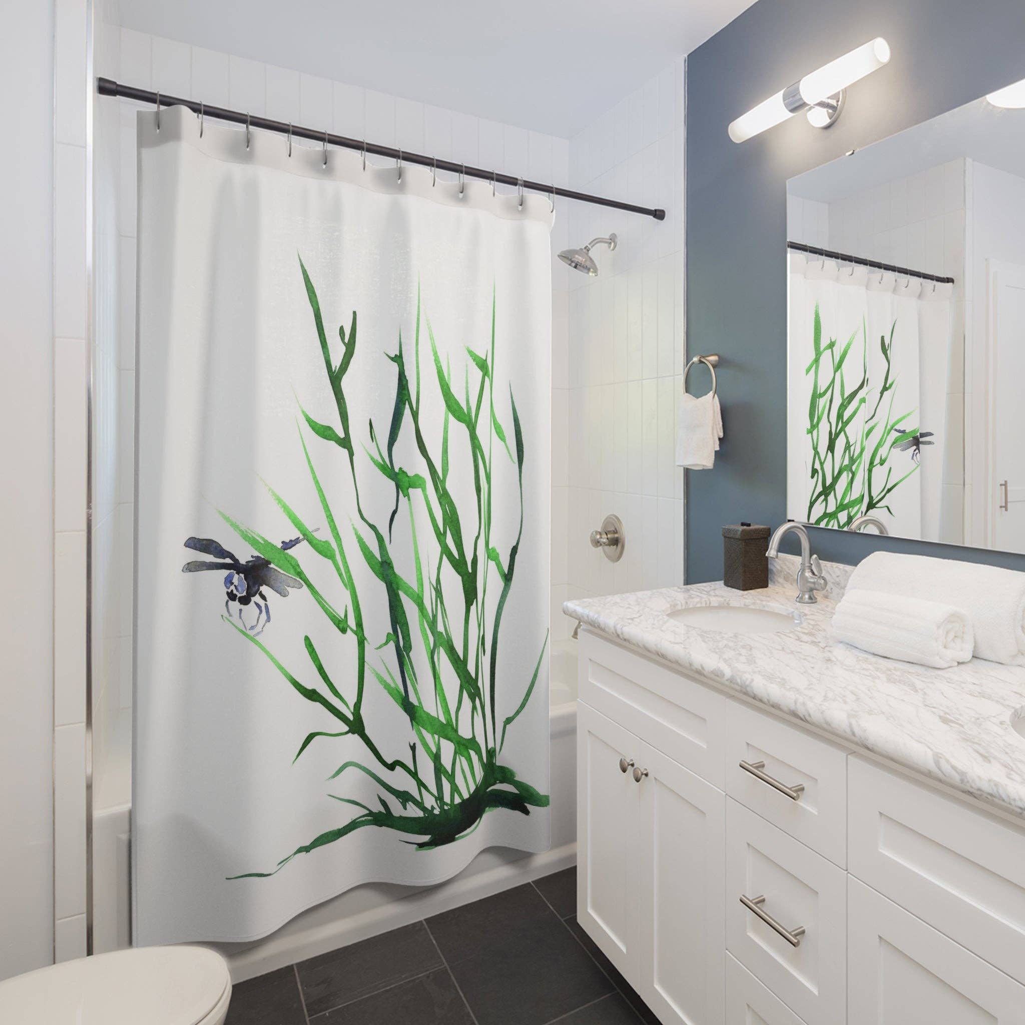This shower curtain is here to add an original touch to any bathroom with your designs. Made with highly durable polyester, this curtain stays like new for a long time to come and is a perfect printing area for your art. NB! Please note that while polyester offers adequate protection against water, a liner might be necessary for full waterproofness. .: 100% Polyester .: One-sided print .: Hooks not included .: Note: Pre-constructed item. Size variance +/- 2"