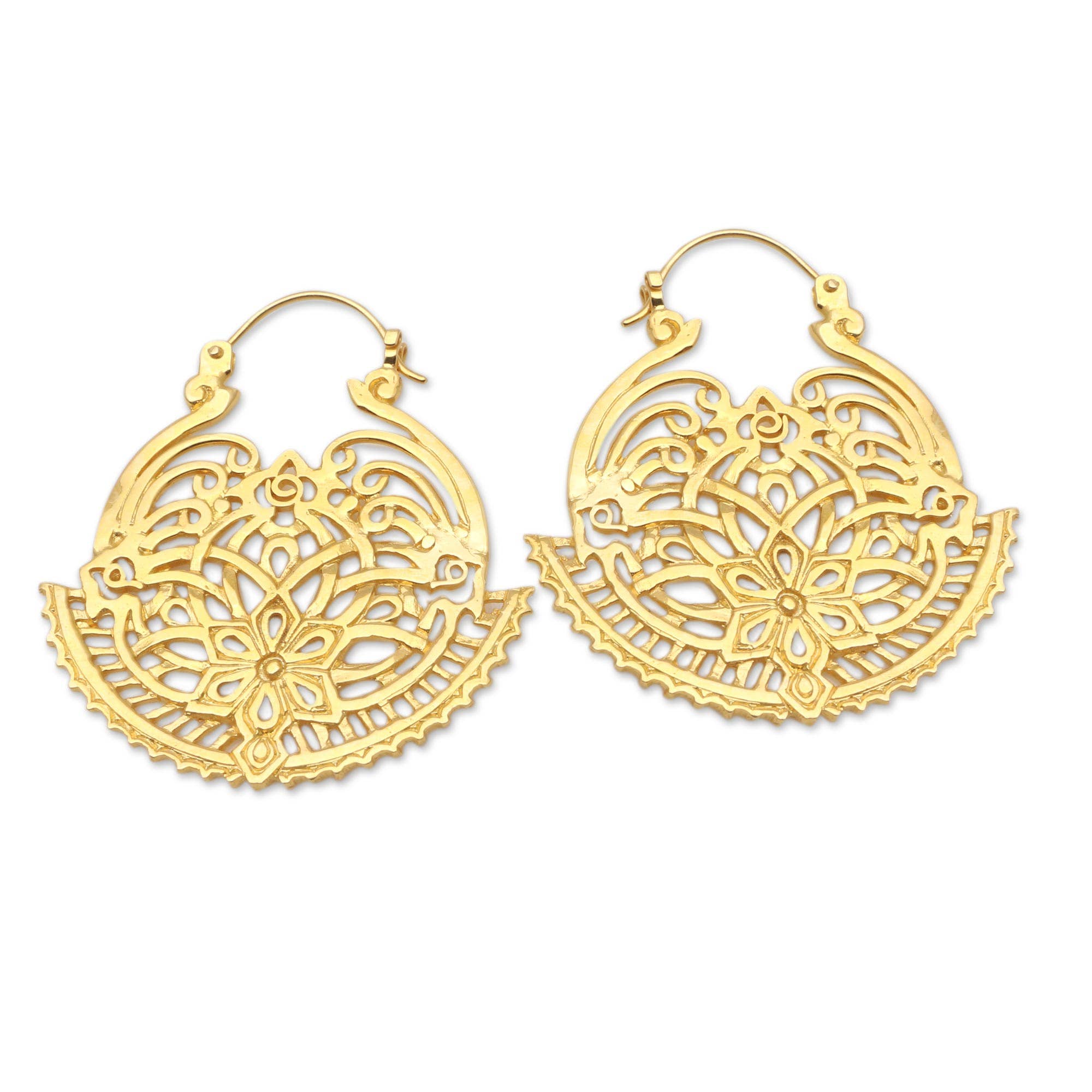 FR3892 Gold Heart Silver Filigree Cutout Round Earrings