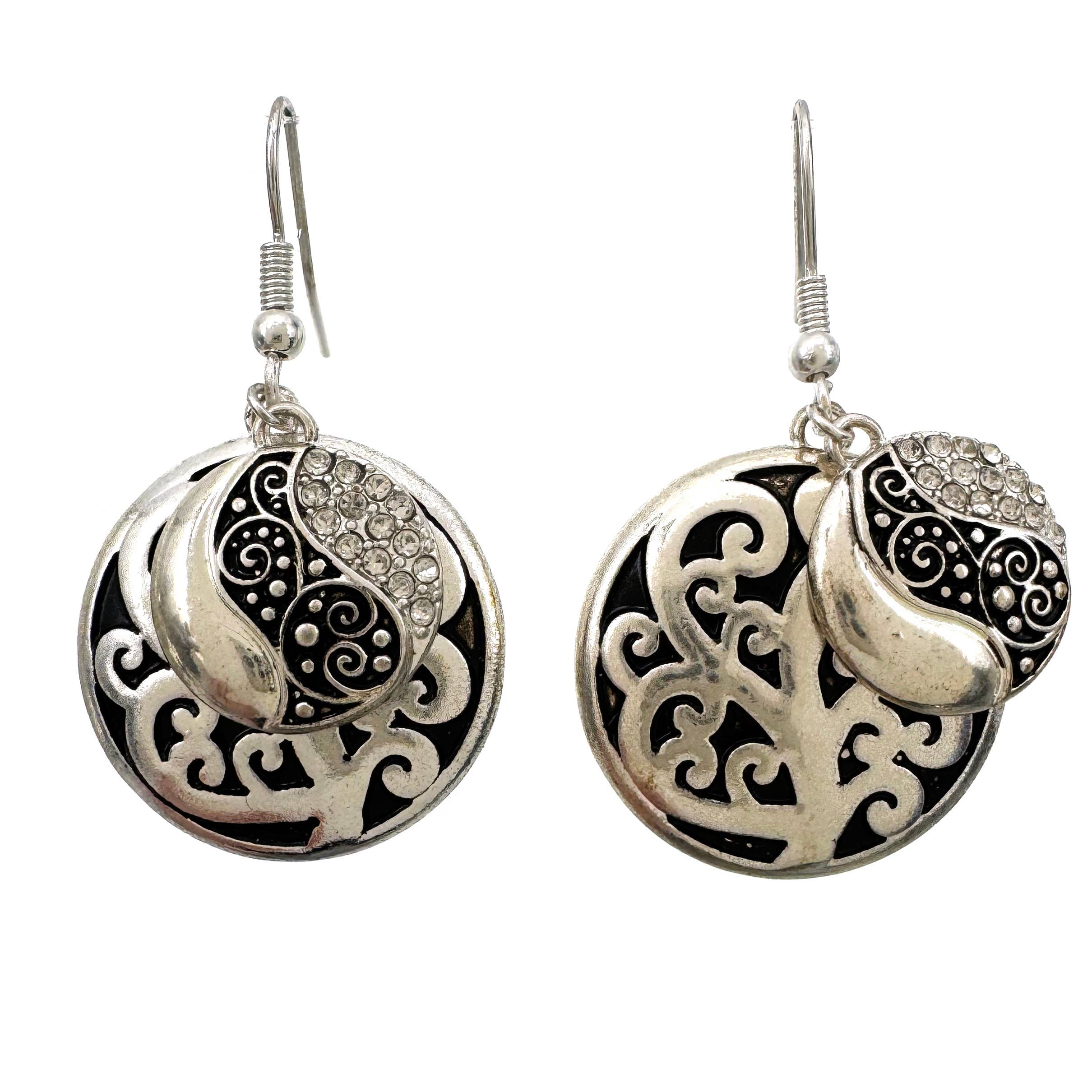 Wholesale FR3892 Gold Heart Silver Filigree Cutout Round Earrings
