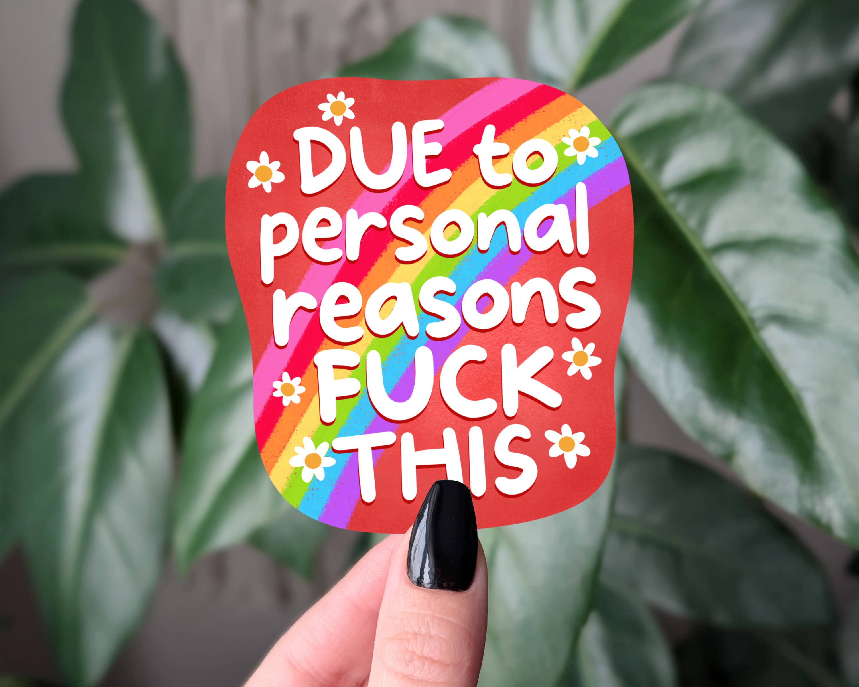 Elevate your style with our premium 3" stickers, crafted from top-grade waterproof vinyl and meticulously laminated for durability. Each sticker features a hand-sliced backing for effortless application, ensuring they adhere smoothly and securely to any surface. These make great gifts! Packaged with care, every sticker comes sealed in a cellophane bag alongside a header card, making them ready for gifting. These delightful stickers aren't just accessories; they're perfect for personalizing water bottles, laptops, phone cases, and more. Product Details: Size: 3" on the longest side Material: Waterproof vinyl with lamination Application: Easy peel-and-stick design Packaging: Sealed cellophane bag with header card Customization: Looking for a different size? Contact us for custom sizes and pricing. Transform your belongings with our collection of beautiful and amusing stickers — ideal for adding a touch of personality wherever you go.