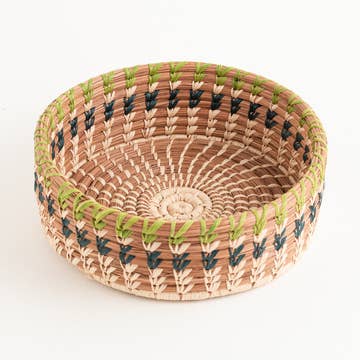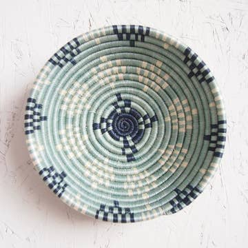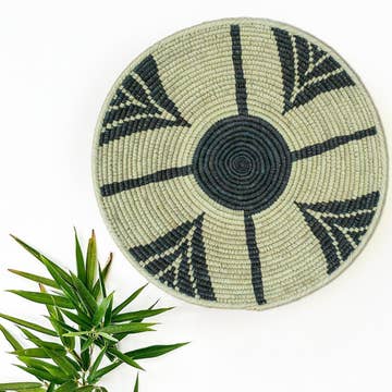 Make a wall statement with a stunning collection of baskets on display or elevate your tablescape with a unique centerpiece. A simple yet bold basket from our Black & Natural collection. Handcrafted by women artisans living in Central Uganda who are part of a cooperative that provides employment and training for disadvantaged or marginalized communities - particularly widows, the disabled and those living with HIV/AIDS. * Made from all natural, sustainably sourced raffia and banana fibers * All synthetic AZO free dyes * Hanging loop on back allows basket to be wall decor in addition to tabletop use * Weavers hand make each basket from home while tending to other household duties. Baskets can take days to weeks to complete with artists weaving 3 or so hours per day while balancing other responsibilities. * No two baskets are identical - there will be slight variations in size and color from the one shown due to the handmade nature of each product. Each basket is both special and unique. HANDMADE IN UGANDA APPROXIMATE SIZE: 13" x 3.5"