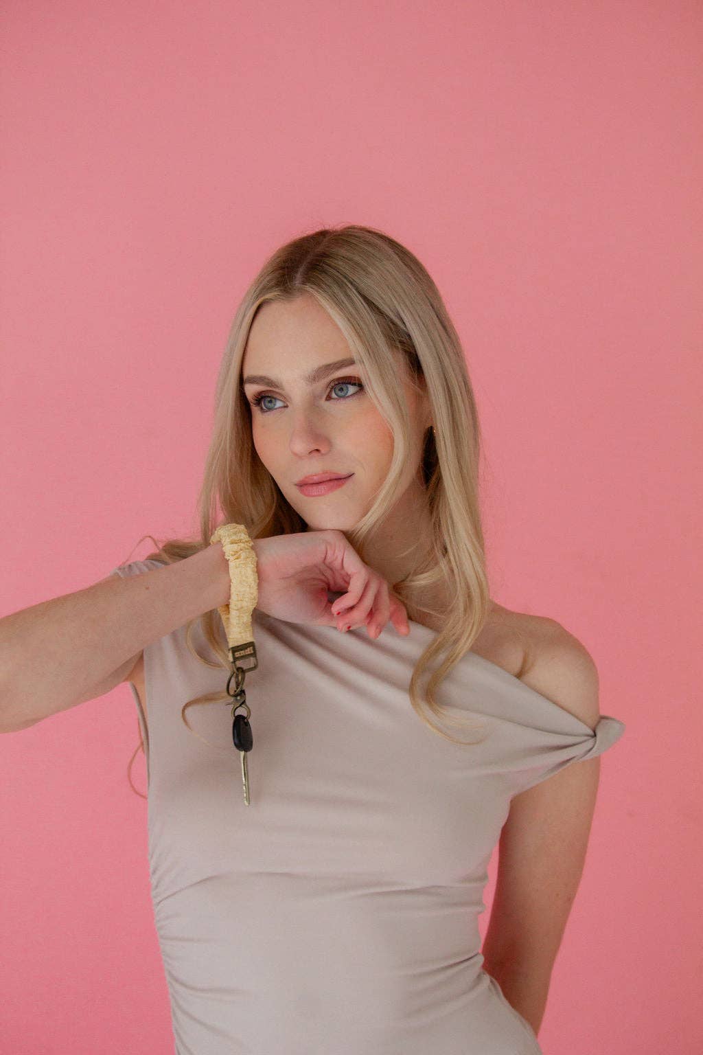 The pearls are on an elastic like a bracelet. If you add keys to this and try to wear it on your wrist it is going to snap. Lovely product but cannot be used to actually carry keys from the pearl bracelet.