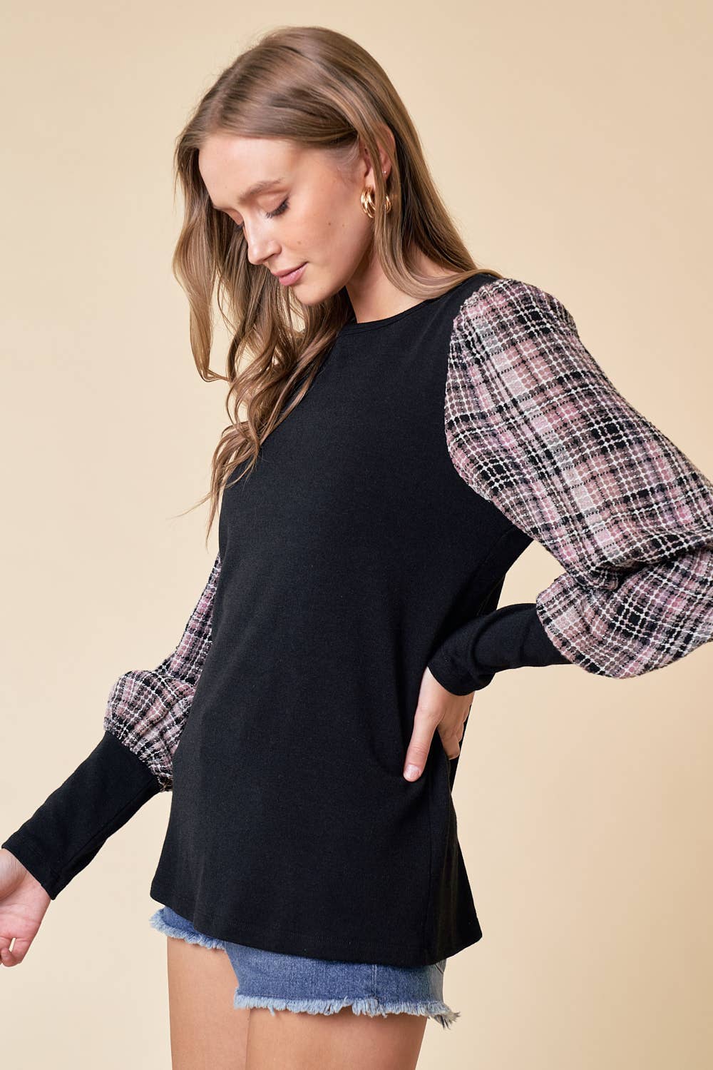 Light Weight Striped Jersey Puff Long Sleeve Top - 44731T
