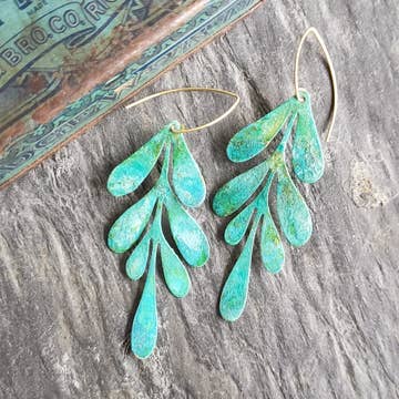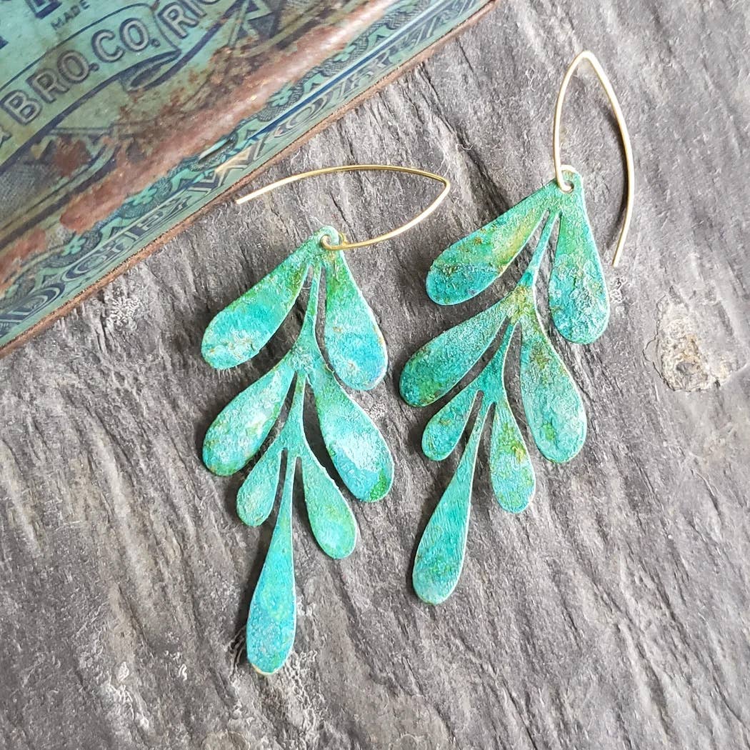 Verdigris Patina Leaf Earrings