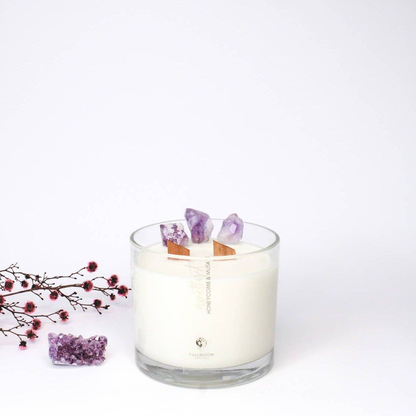 We both wish you could smell our candle through the screen! This little bite sized candle will give you a little slice of heaven so when it comes to ordering our range of full sizes you know exactly what your getting! Rose Quartz Japanese Honeysuckle Vanilla & Cashmere Amethyst Honeycomb & Musk English Pear & Freesia Blue Kyanite Coconut & Key Lime Coconut & Pineapple Citrine Pink Calypso Champagne & Berries Sodalite Black Raspberry Lavender Fields Amazonite Green Tea & Mandarin Lemongrass & Lime Rainbow Moonstone Flowerbomb One Million Triple Fragrance | 160g 100% Natural Soy Wax Blend with natural cotton wick