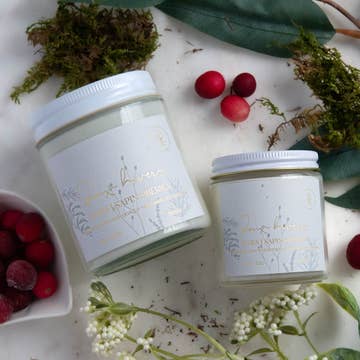 TOP NOTE: Cranberry, Apple MIDDLE NOTE: Orange Peel Sugar BASE NOTE: Clove, Balsam What sets our product apart? We like to keep things simple, clean, and non-toxic by using 100% domestically grown soy wax, fine fragrance oils, cotton-core wicks, no additives or dyes. By hand we wick, pour, and label each candle to ensure unparalleled quality. • Jar candle burns clean for 45 hours • For best results and achieving the optimal 45 hour burn time. We recommend burning the candle for at least 3 hours or until the candle melts to the edge of the glass container.