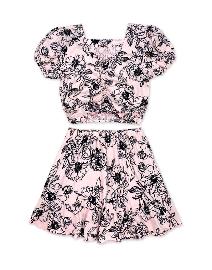 Sleeveless pink flower top skirt girls summer clothes
