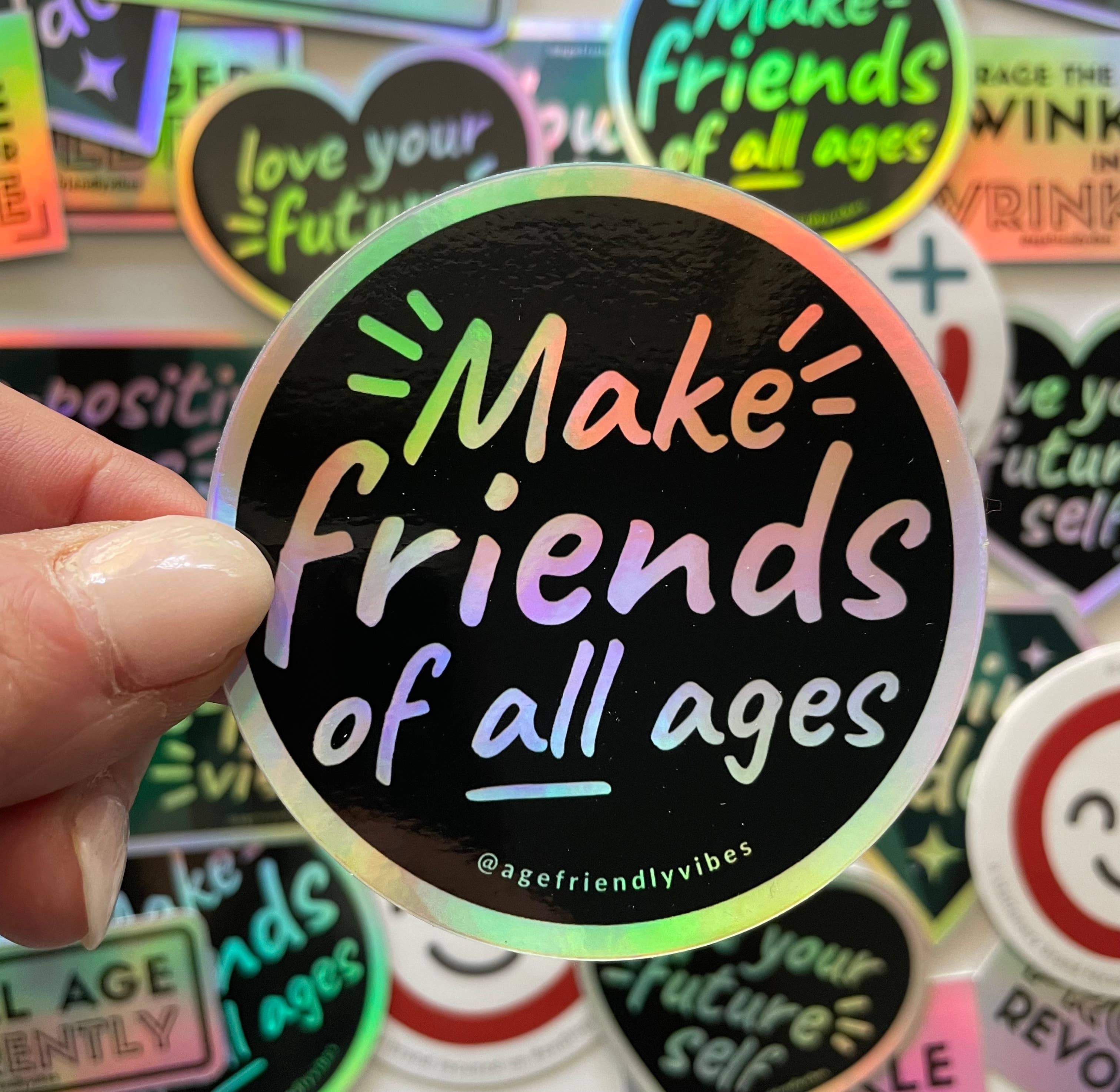 Great to stick on your laptop, water bottle, notebook, or anywhere else to show your age pride! Size is 3.5” by 3”. All stickers are water-resistant and can withstand hand washing, but are not dishwasher safe.