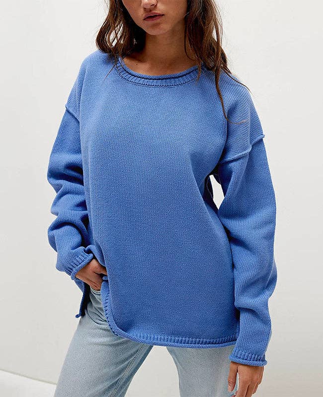 Wholesale Cropped Long-Sleeve Round Neck Knit Sweater