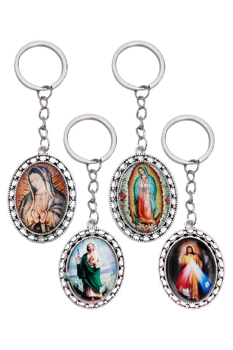 Symbols Of Faith Round Crystal Mary and Child Charm Carabiner Key Chain A unique and charming designed Mary and Jesus' key ring featuring a round crystal fra,e with an image of Mother and Child. Religious key chains make great gifts for new drivers, and new homes. Made In USA Symbols Of Faith Jewelry Symbols Of Faith is an inspirational line of faith-oriented jewellery and gifts. The collection is proudly designed and made in the U.S.A. This inspirational collection offers pieces that are sure to uplift your spirit with jewelled angels, etched cross necklaces, engraved crucifixes, handmade rosaries, hand-enamelled rosary boxes, delicate bookmarks, cross earrings, porcelain roses, charm bracelets, cross wall plaques and other faith-inspiring gifts and accessories.